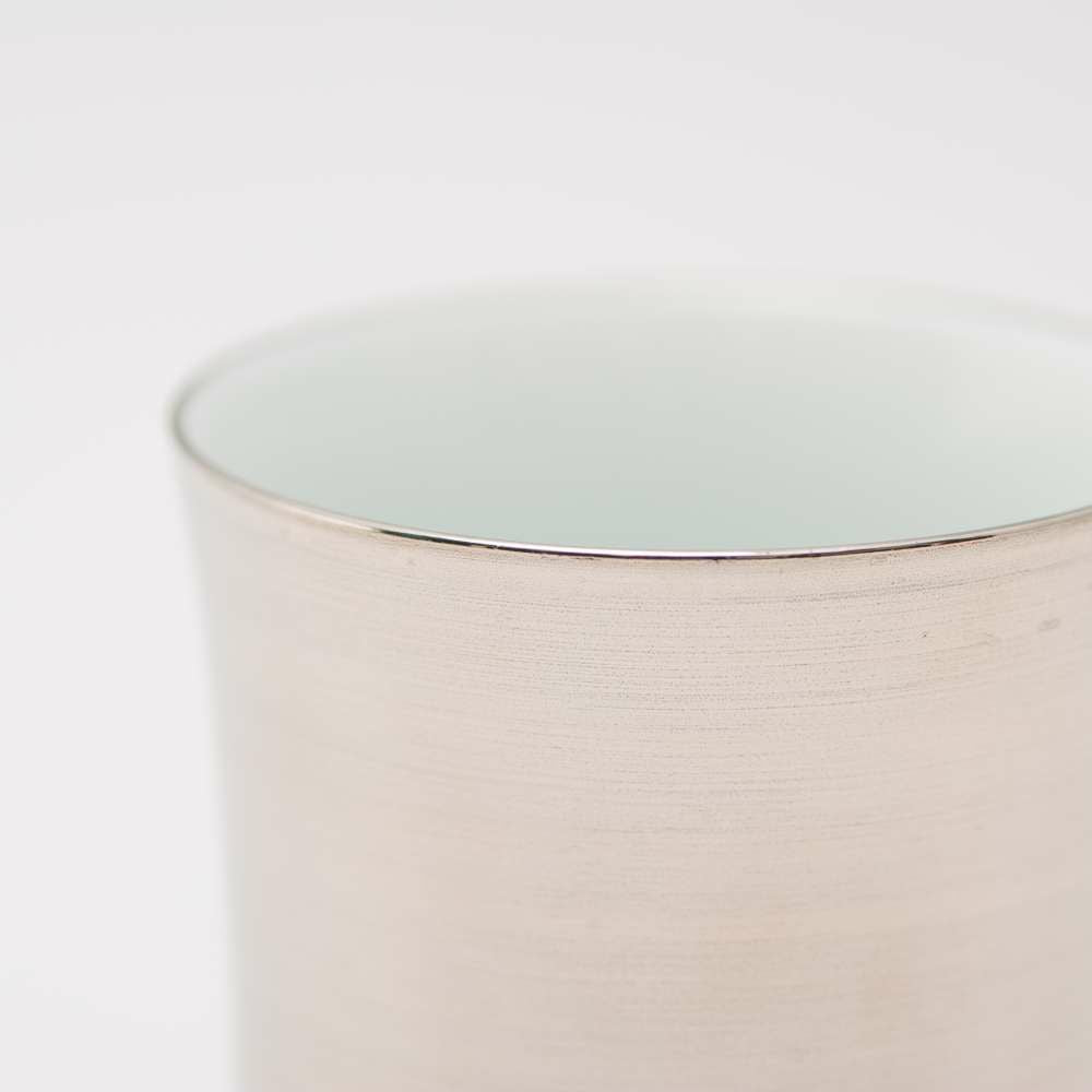弥左エ門窯に伝わる門外不出の技術で調合したプラチナを一個一個職人が刷毛塗りする事で刷毛の陰影が出来、深みのある輝きを実現しました。