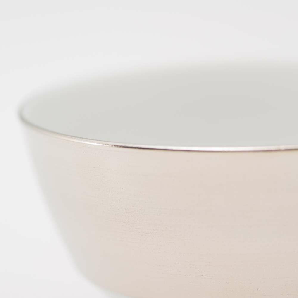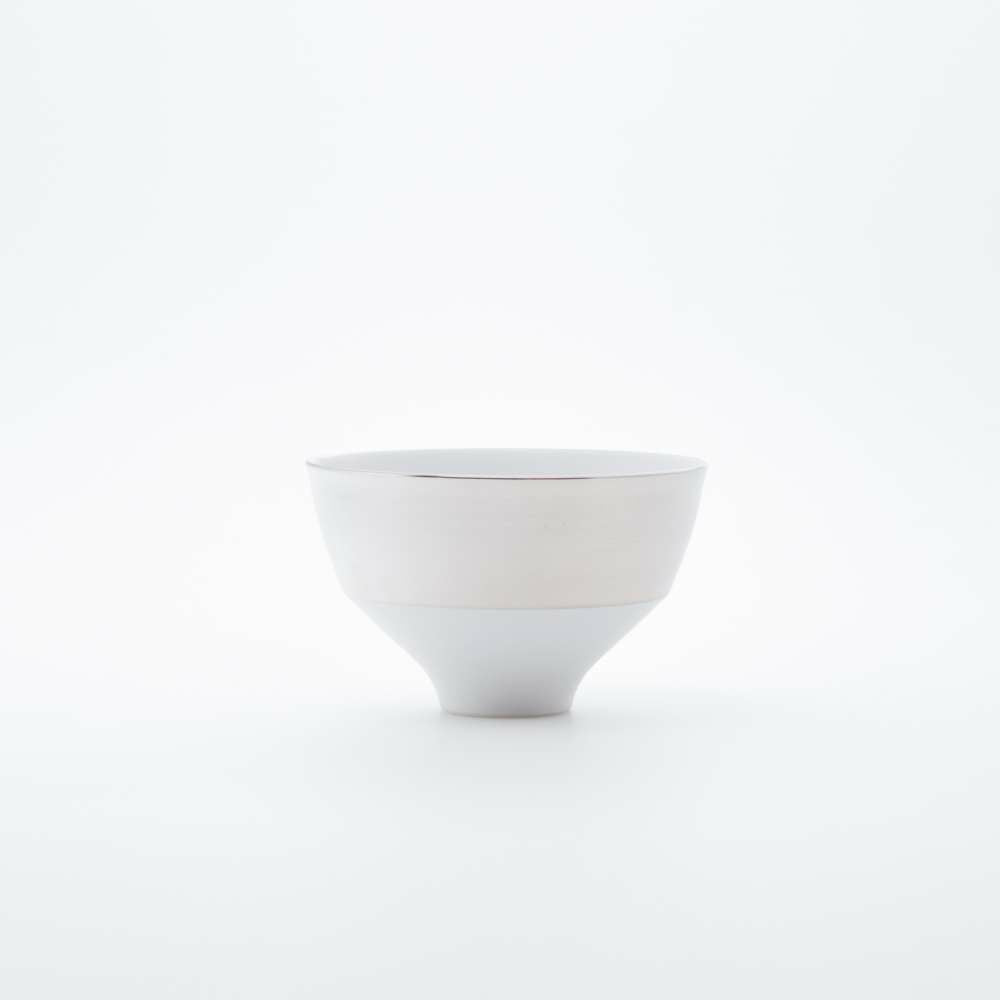 上品なプラチナの、段が付いて持ちやすい飯碗