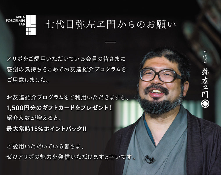 ぜひこの機会に、ARITA PORCELAIN LABの魅力をお友達にもご紹介ください。